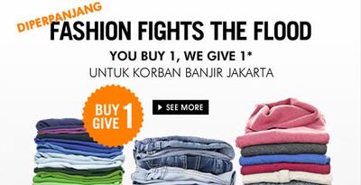 Dengan membeli satu produk apa pun di situs belanja online ini, Anda secara otomatis menyumbangkan satu produk bantuan kepada korban banjir Jakarta.